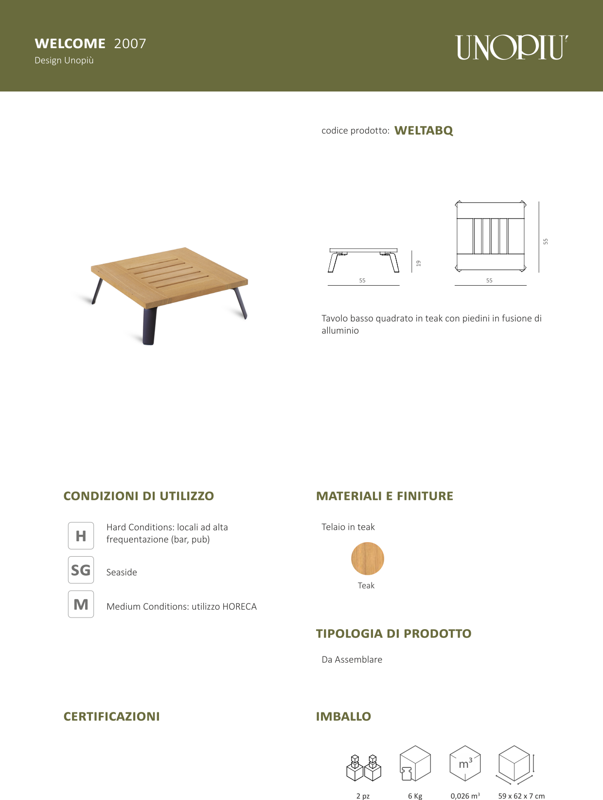 Tavolo basso quadrato Welcome in teak 55 x 55 H 19 cm.
